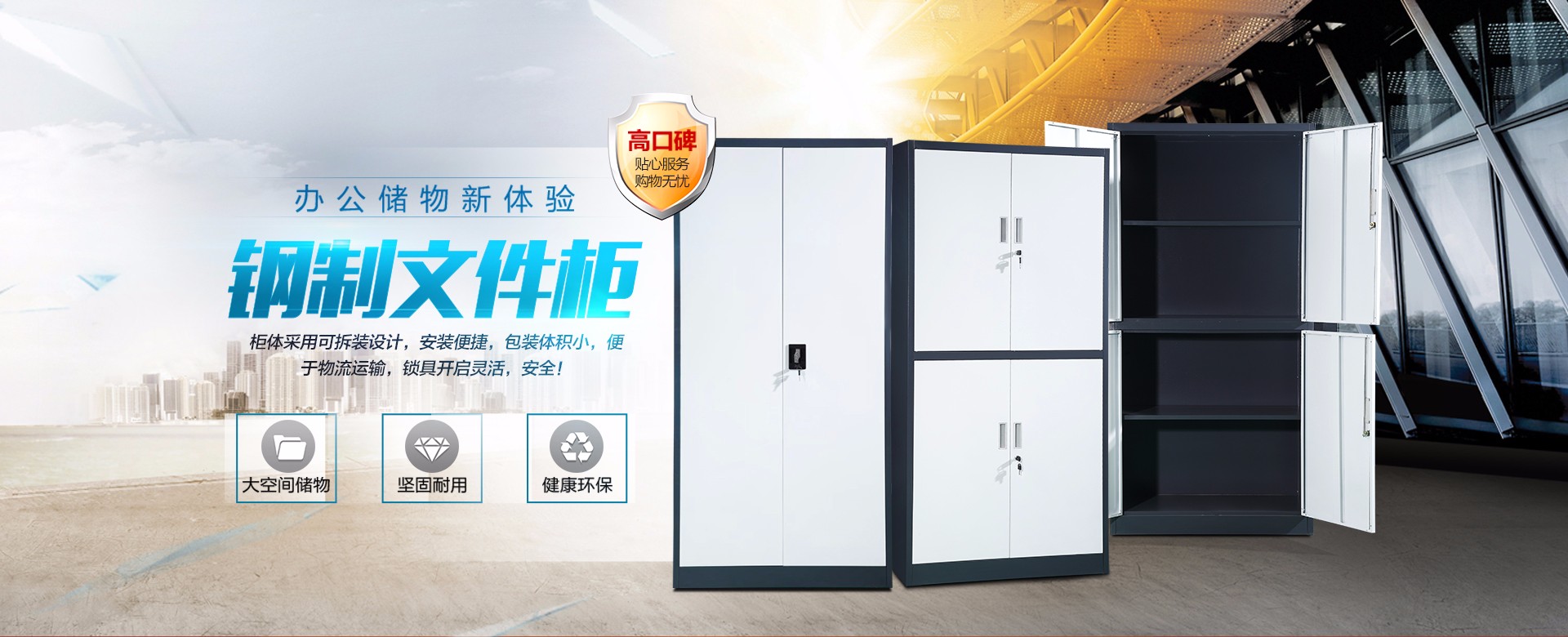 “東方盛世”系列鋼制辦公家具均采用上海、武鋼優(yōu)質(zhì)冷板、先進(jìn)折彎成型全點(diǎn)焊接工藝、高級(jí)靜電噴塑、全模具化生產(chǎn)、外觀(guān)線(xiàn)條流暢,色澤高雅大方。其生產(chǎn)經(jīng)營(yíng)的各種系列文件柜、檔案柜、更衣柜、保險(xiǎn)柜、密集架、電腦臺(tái)、辦公隔斷、鋼制家具、板式家具等產(chǎn)品深受客戶(hù)的喜愛(ài)。以上產(chǎn)品以其優(yōu)良品質(zhì)和完善的售后服務(wù),在同行業(yè)中擁有較高的信譽(yù)和知名度。
